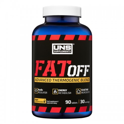 "Жиросжигатель Fat Off UNS — препарат который сжигает подкожный жир, сохраняя мышечную массу и делает ее значительно рельефнее. Жиросжигатель Fat Off от UNS ускоряет метаболизм, повышает энергию и силу при высоких кардио нагрузках, оказывает термогенный эффект, свободные жиры преобразует в энергию, что приводит к потере веса.