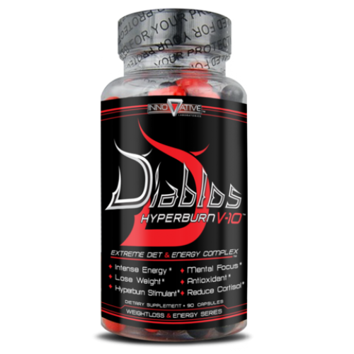 Из линейки продукции Innovative Labs особенно сильно выделяется жиросжигатель Diablos Hyperburn V-10. Главной отличительной особенностью является наличие в его составе блокаторов кортизола. Благодаря этому добавка можно применяться перед соревнованиями с целью достижения эффекта сушки.