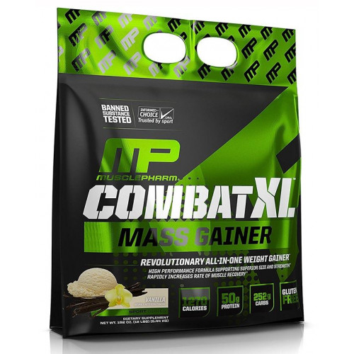"MusclePharm Combat XL Mass Gainer – гейнер для набора мышечной массы с высоконцентрированным содержанием всех необходимых веществ для поддержания анаболической среды в организме в период интенсивных тренировок.