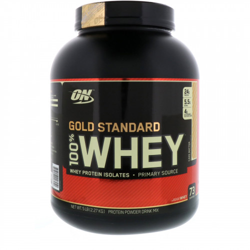 100% Whey Gold Standard Optimum Nutrition – сывороточный протеин (сывороточный изолят + концентрат), он разработан на основе изолята сывороточного протеина, который является ценнейшей, на сегодняшний день, формой протеина. Здесь минимальное содержание сахара, других углеводов и жиров при высоком содержании белка. 100% Whey Gold Standard – это 90% высококачественного сывороточного протеина, каждая порция которого содержит свыше 5 г «разветвленных» аминокислот BCAA, которые оказывают ярко выраженный антикатаболический эффект и служат великолепным материалом для построения Ваших мышц, а также подпитки их энергией.